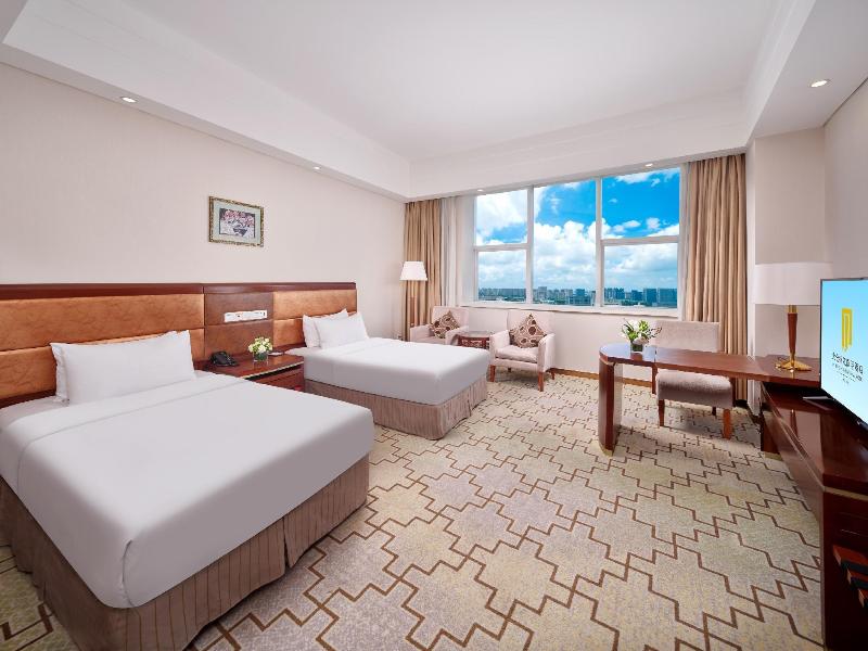 Este hotel está estratégicamente ubicado en la zona de desarrollo económico de la ciudad de Taicang. Construido con un diseño arquitectónico llamativo, el hotel se destaca como uno de los lugares más impresionantes de Taicang. Se encuentra a menos de 45 minutos del Aeropuerto Internacional Shanghai Hongqiao y tiene fácil acceso a las principales autopistas. Algunas de las atracciones famosas situadas en los alrededores incluyen South Garden, la antigua residencia de Zhang Pu, y Shaxi Old Town. Una amplia variedad de restaurantes occidentales y centros comerciales también se encuentran a solo unos minutos del hotel. El establecimiento ofrece lujosas habitaciones equipadas con dispositivos modernos y baños completamente equipados, que además cuentan con magníficas vistas de la ciudad. Dispone de 3 restaurantes que sirven una variedad de exquisitos platos de la cocina occidental y oriental.